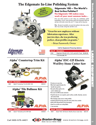 Now just about anyone in your shop can confidently polish backsplashes, bevels, seam dressing, grind back laminated build ups and tops with inside corners like your “L” shape and bat wing tops.