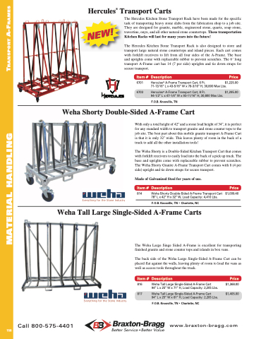 6701 Hercules® A-Frame Transport Cart, 6 Ft. $1,225.00 71-13/16” L x 43-5/16” W x 78-3/16” H, 30,800 Max Lbs.