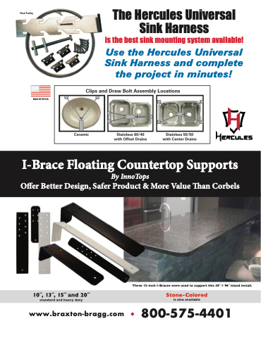 Three 15-inch I-Braces were used to support this 30˝ × 96˝ island install.