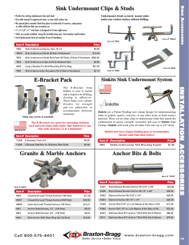 The E-Brackets are great for mounting stainless steel and porcelain sinks under thin material or any time sink clearance is at a minimum!