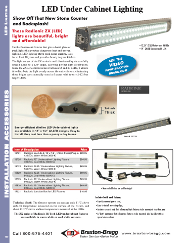 The ZX series of Radionic Hi-Tech LED undercabinet fixtures are available in warm white or cool white versions.