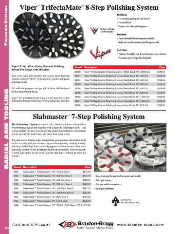 •Finest resin-bonded diamond segments available •Makes fast, cost-effective work of polishing granite slabs