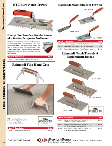 Raimondi Margin Trowel, 5” x 2”, Rubber Handle Raimondi Bucket Trowel, 5” x 3”, Rubber Handle Raimondi Bucket Trowel, 7” x 4”, Rubber Handle
