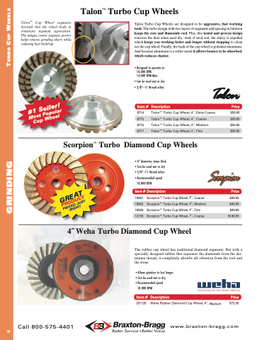 ScorpionTM Turbo Cup Wheel, 4˝, Coarse ScorpionTM Turbo Cup Wheel, 4˝, Medium ScorpionTM Turbo Cup Wheel, 4˝, Fine ScorpionTM Turbo Cup Wheel, 7˝, Coarse