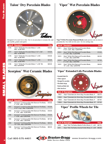 Viper® B-Slot Porcelain Diamond Blades make precise cuts on stone or porcelain tile. Use with wet tile saws– for wet cutting only.