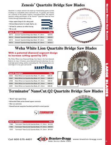 Zenesis® Quartzite Bridge Saw Blade, 14”, 20mm Zenesis® Quartzite Bridge Saw Blade, 16”, 20mm Zenesis® Quartzite Bridge Saw Blade, 18”, 20mm Zenesis® Quartzite Bridge Saw Blade, 20”, 20mm