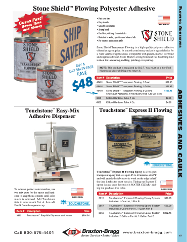 TouchstoneTM Express II Flowing Epoxy System Includes: 1 Quart A, 1 Pint B