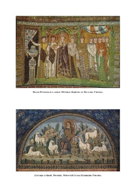 Выход Феодоры и ее двора. Мозаика. Церковь св. Виталия. Равенна. Пастырь добрый. Мозаика. Мавзолей Галлы Плацидии. Равенна.