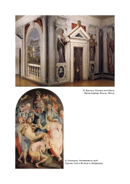 П. Веронезе. Роспись вестибюля. Вилла Барбаро Вольпе. Мозер. П. Понтормо. Положение во гроб. Церковь Сайта Феличита. Флоренция.