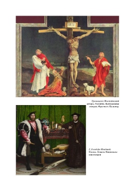 Грюневальд. Изенгеймский алтарь. Распятие. Центральная створка. Фрагмент. Кальмар. Г. Гольбейн Младший. Послы. Лондон. Националь- ная галерея