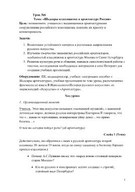 Шедевры архитектуры», учебная презентация по теме урока, распечатанные