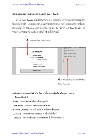 การแสดงผลส าหรับแบบทดสอบในหน้า Quiz Results