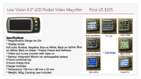 Low Vision 4.3" LCD Pocket Video Magnifier Price US $325