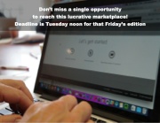 Don’t miss a single opportunity to reach this lucrative marketplace! Deadline is Tuesday noon for that Friday’s edition