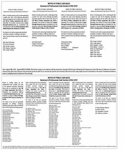 NOTICE OF PUBLIC LIEN SALES Business & Professional Code Section 21700-21707