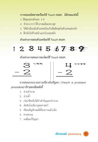 การสอนคณิตศาสตรโดยใช Touch Math มีลักษณะดังนี้