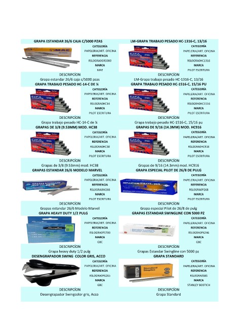 GRAPAS ESTANDAR 26/6 MODELO MARVEL GRAPA ESPECIAL PILOT DE 26/8 DE PULG