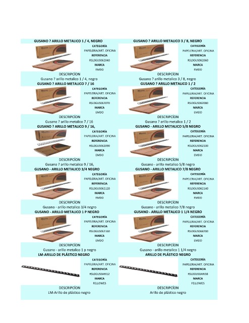 GUSANO ? ARILLO METALICO 1 / 4, NEGRO GUSANO ? ARILLO METALICO 3 / 8, NEGRO