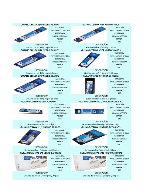 Gusano Cerlox de una pulgada Gusano cerlox de11/8p bolsa con 25 pz