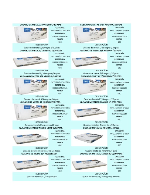 GUSANO DE METAL 3/8PNEGRO C/20 PZAS GUSANO DE METAL 1/2P NEGRO C/20 PZAS