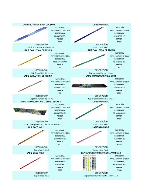 Lapicero Aspen 1 pza col surt Lapiz baco No.2