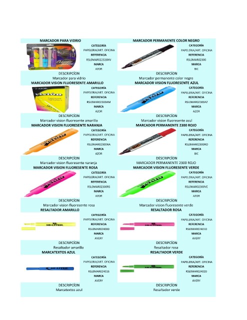 MARCADOR VISION FLUORESENTE ROSA MARCADOR VISION FLUORESENTE VERDE