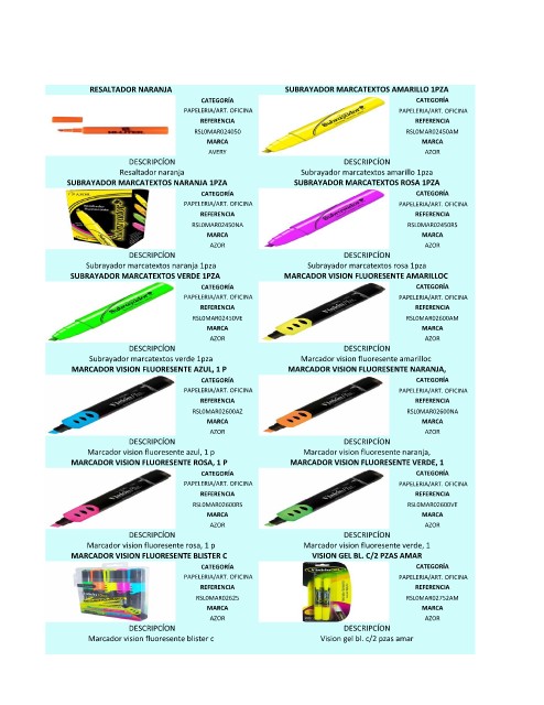 MARCADOR VISION FLUORESENTE AZUL, 1 P MARCADOR VISION FLUORESENTE NARANJA,