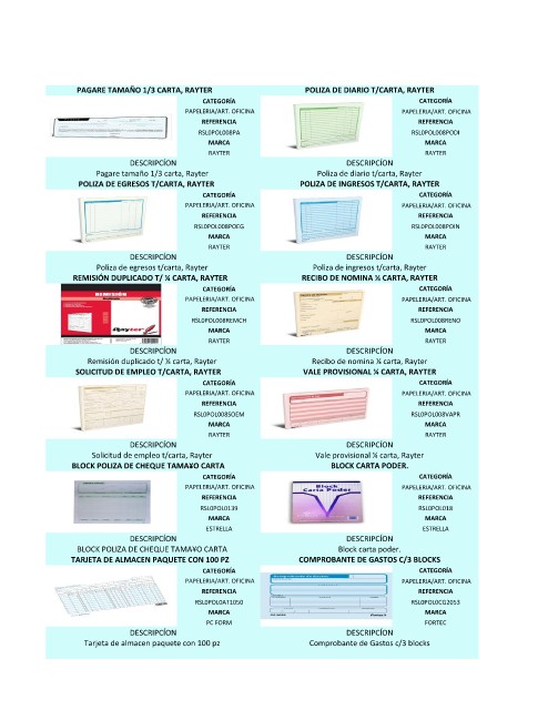 PAGARE TAMAÑO 1/3 CARTA, RAYTER POLIZA DE DIARIO T/CARTA, RAYTER