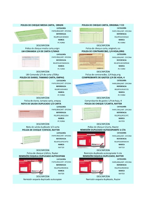 POLIZA DE CHEQUE T/OFICIO, RAYTER REMISIÓN DUPLICADO AUTOCOPIANTE ¼ CTA