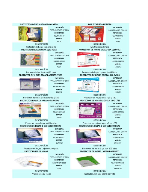 PROTECTOR DE HOJAS TAMA¤O CARTA MULTITARJETAS KINERA