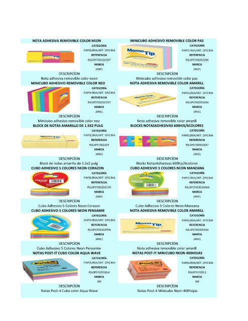 Nota adhesiva removible color neon Minicubo adhesivo removible color pas