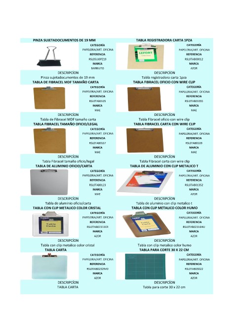 TABLA DE FIBRACEL MDF TAMAÑO CARTA TABLA FIBRACEL OFICIO CON WIRE CLIP