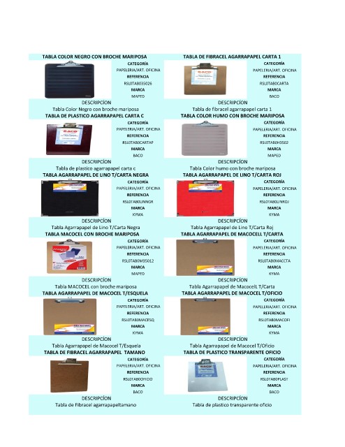 Tabla Agarrapapel de Macocel T/Esquela Tabla Agarrapapel de Macocel T/Oficio