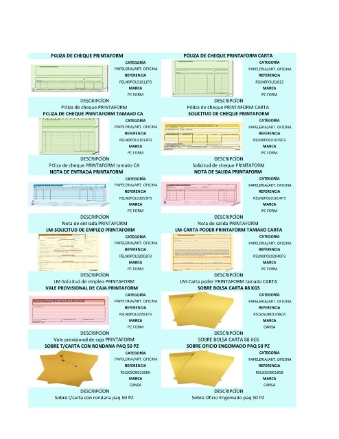 P¢LIZA DE CHEQUE PRINTAFORM TAMA¤O CA SOLICITUD DE CHEQUE PRINTAFORM