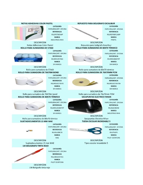 PAPELERIA/ART. OFICINA PAPELERIA/ART. OFICINA