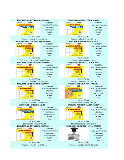 ETIQUETA ADHESIVA JANEL 19MMX38MM ETIQUETA ADHESIVA JANEL BLANCA