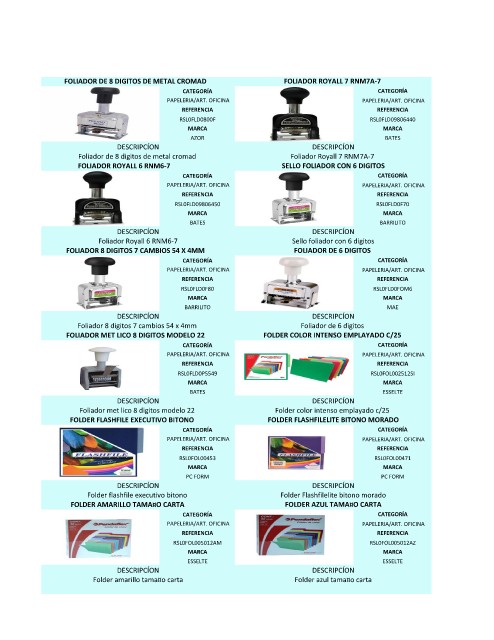 Foliador met lico 8 digitos modelo 22 Folder color intenso emplayado c/25