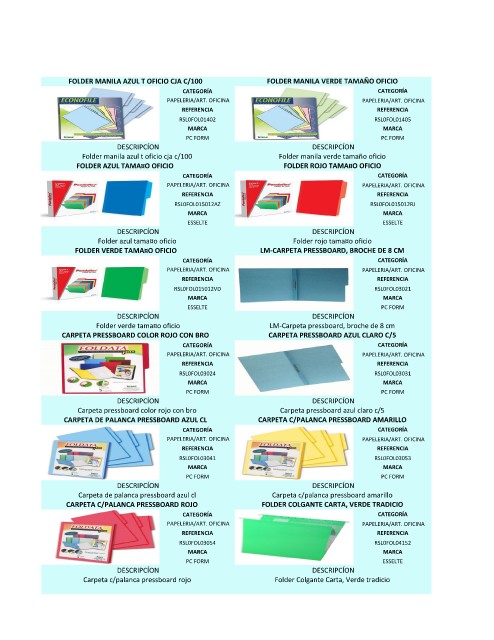 FOLDER MANILA AZUL T OFICIO CJA C/100 FOLDER MANILA VERDE TAMAÑO OFICIO