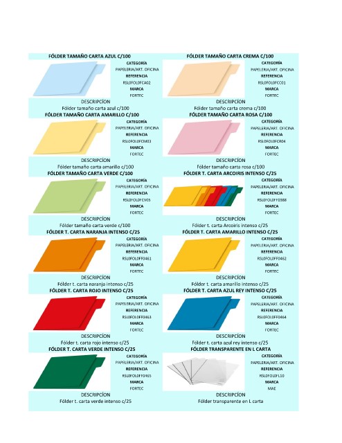 FÓLDER TAMAÑO CARTA VERDE C/100 FÓLDER T. CARTA ARCOIRIS INTENSO C/25