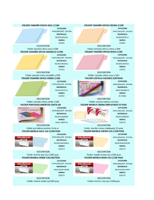 FOLDER MANILA VERDE CJA/100 PZAS FOLDER MANILA ROSA CJA C/100 PZAS