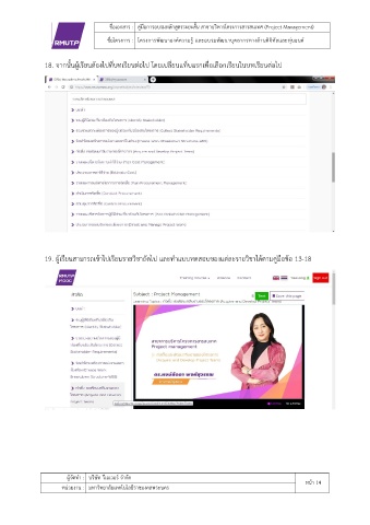 19. ผู้เรียนสามารถเข้าไปเรียนรายวิชาถัดไป และท าแบบทดสอบของแต่ละรายวิชาได้ตามคู่มือข้อ 13-18