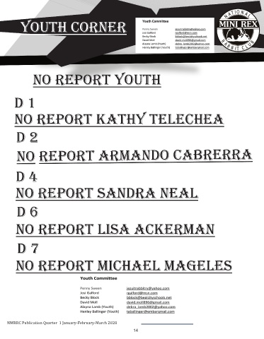 Youth Corner No Report Youth D 1 No Report Kathy TElechea D 2 NO REPORT Armando Cabrerra D 4 NO REPORT Sandra Neal D 6 NO REPORT Lisa Ackerman D 7 NO REPORT Michael Mageles NMRRC Publication Quarter 1 January-February-March 2020 14
