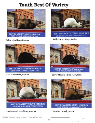 Youth Best Of Variety Sable Point : Vogel,Bailee Sable : Sullivan, Breana Seal : Balcunas, Loralei Silver Marten : Bell, Jacie,Kaya Smoke Pearl : Sullivan, Breana Tortoise : Micek, Macie NMRRC Publication Quarter 1 January-February-March 2020 46