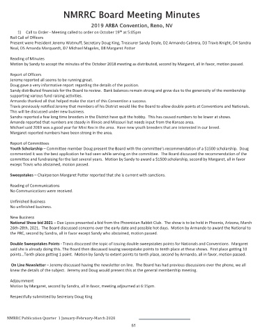 National Show bid 2021 – Dae Lycos presented a bid from the Phoenician Rabbit Club. The show is to be held in Phoenix, Arizona, March