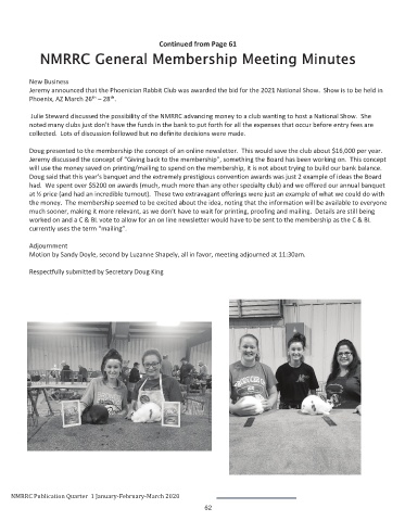 Jeremy announced that the Phoenician Rabbit Club was awarded the bid for the 2021 National Show. Show is to be held in
