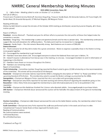 Standards – Chairperson Armando Cabrera reported the ARBA is changing the description of “White” to “Rudy Eyed White” in the