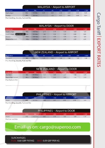 Malaysia Mainland KUL+ 100 Kilos 2.89 2.40 2.40 2.30 2.30 Cargo Tariff | EXPORT RATES