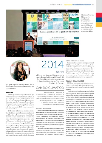 Sobre lo que viene, Gladys Vidal explica que disponibilidad y calidad del agua para la en todos ellos CRHIAM puede ser un actor relevan-