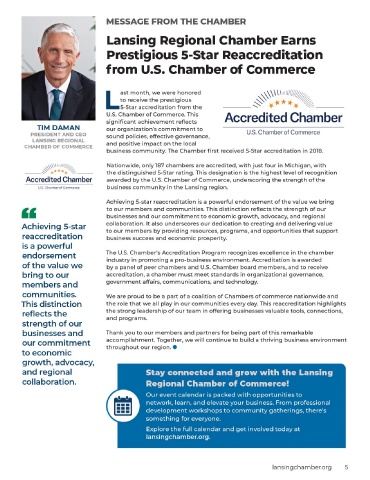 b u si n e s s c o m m u nit y. T h e C h a m b er fir st r e c ei v e d 5- St ar a c cr e dit ati o n i n 2 01 8.