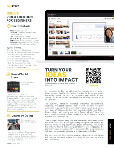 This workshop is perfect for happening October 23, 2025, at TechSmith Headquarters in East